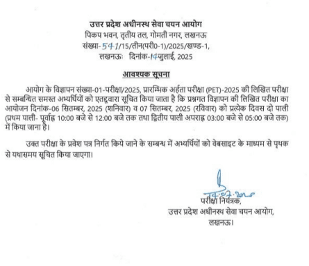 UP PET 2025 Exam Date – अब ऑफिशियल डेट जारी